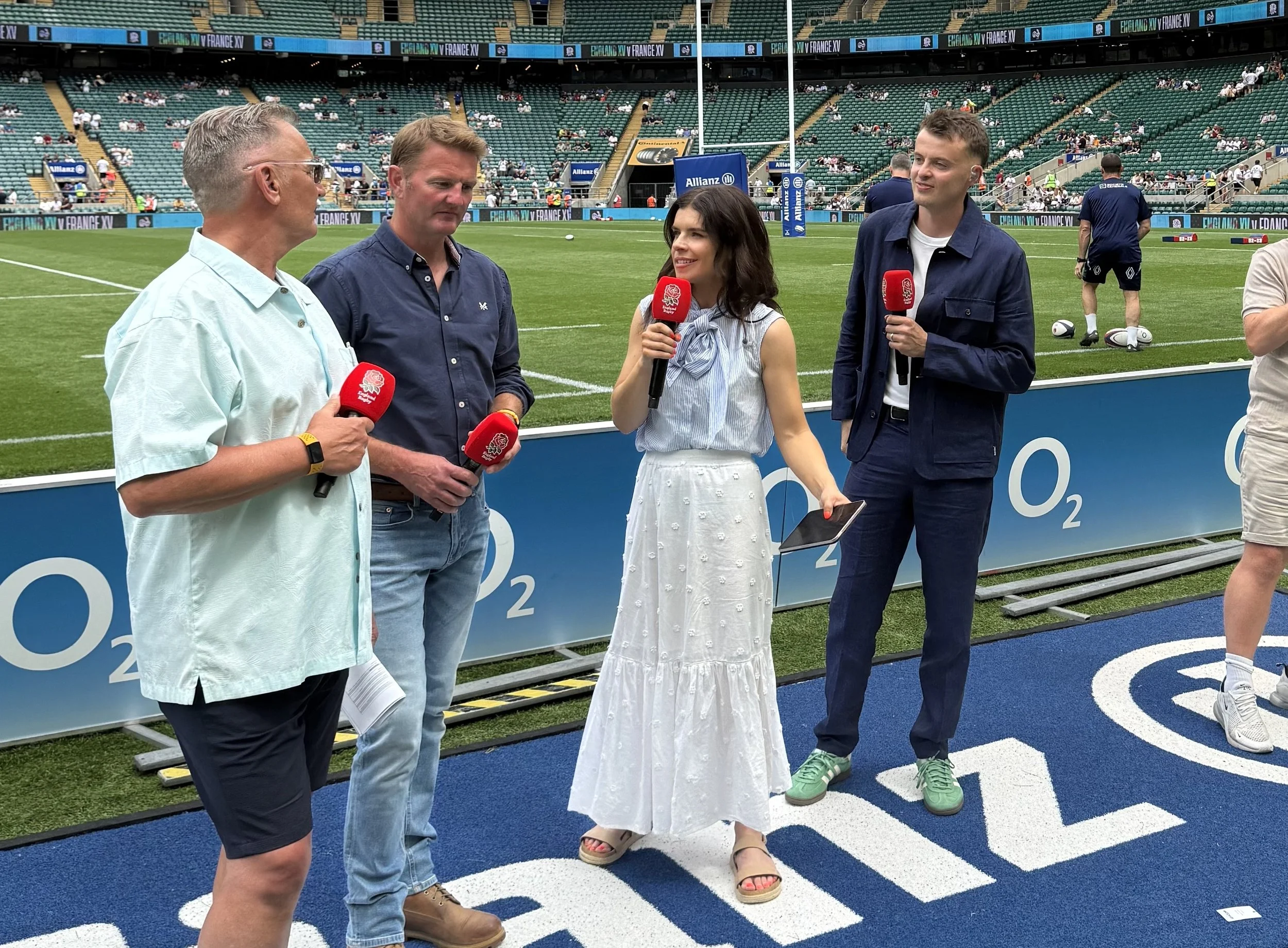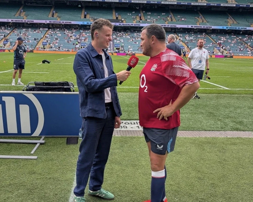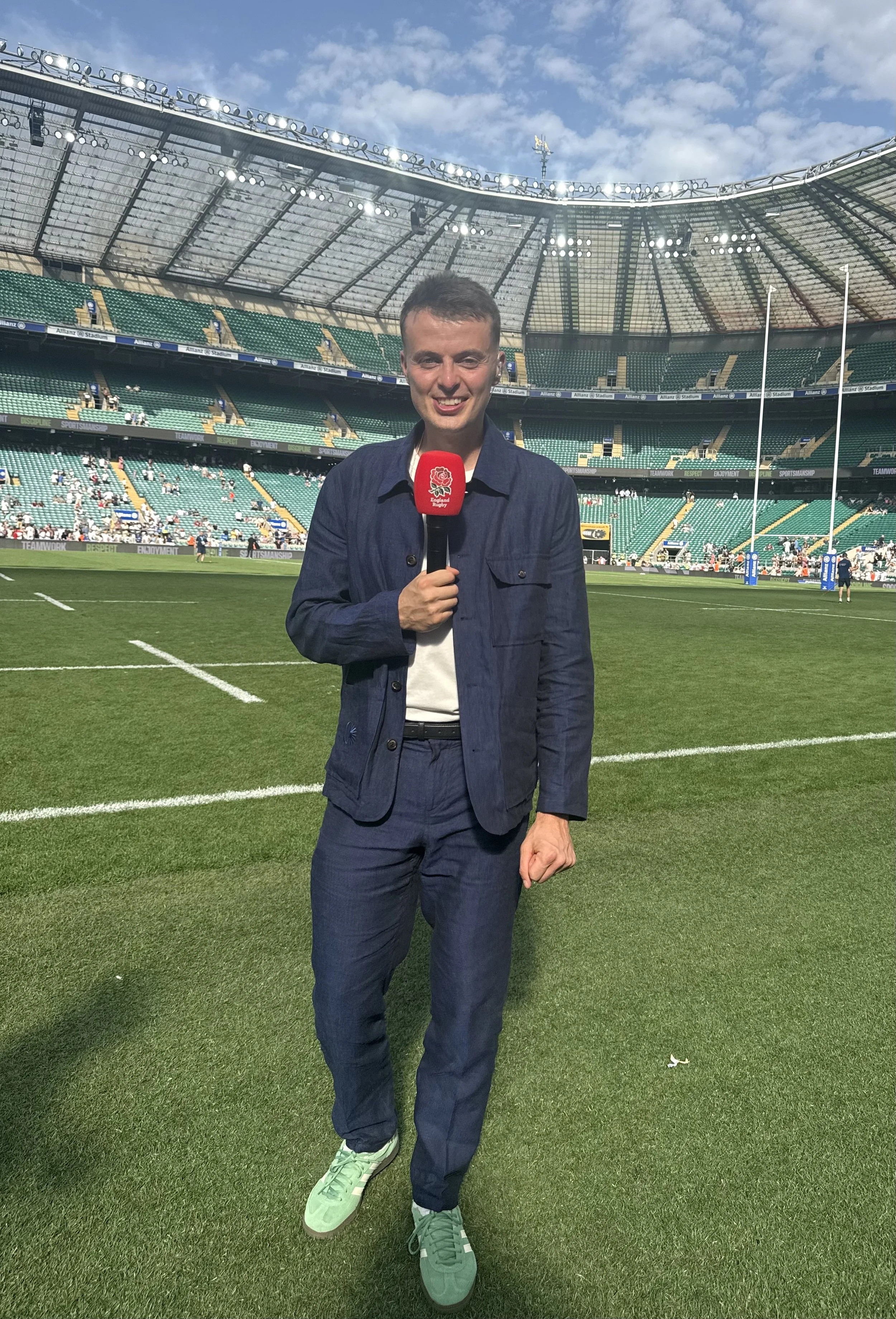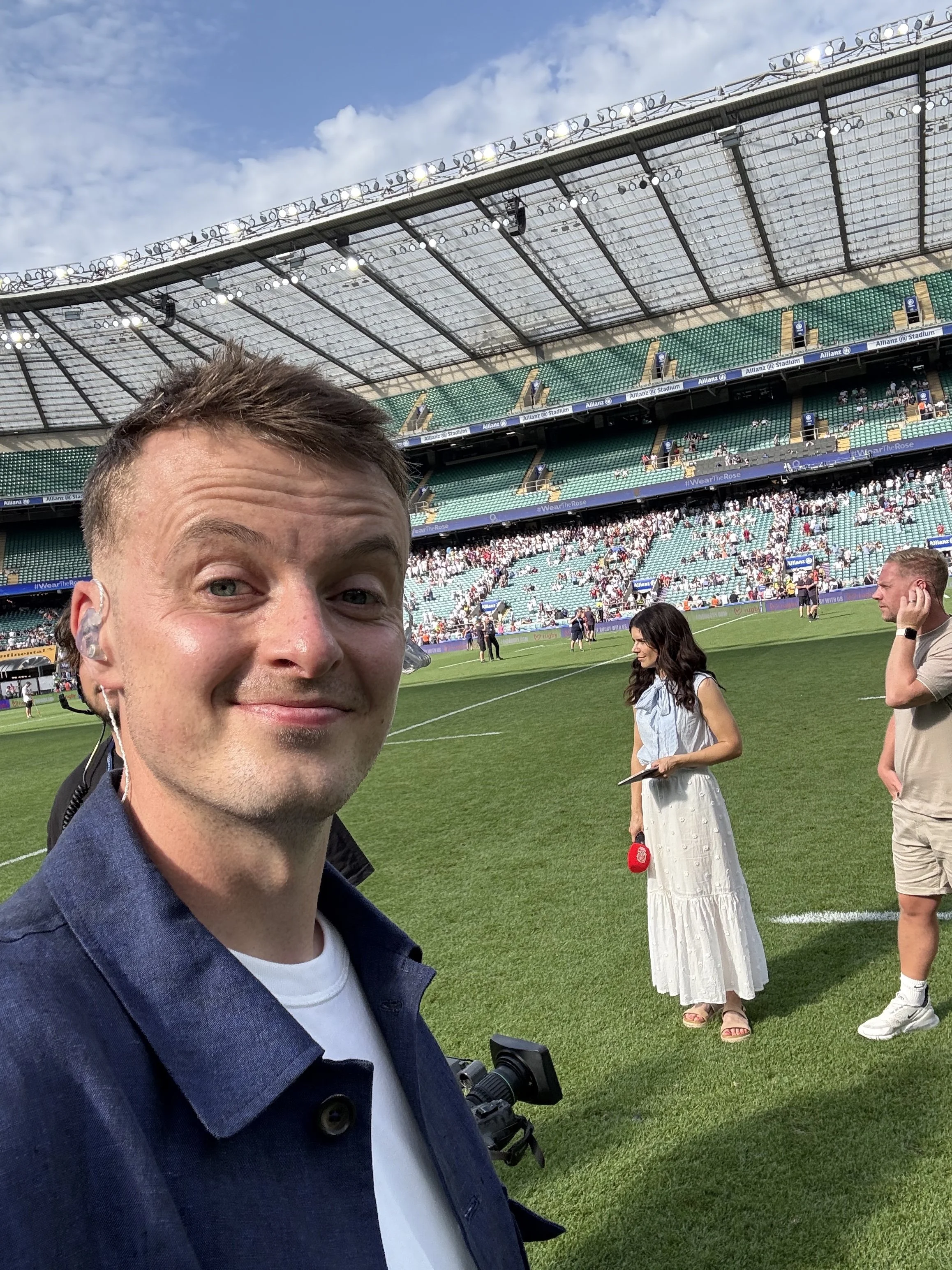 Alex’s role across the day included crowdwork in and around Twickenham, including hyping up the crowd as the team arrived.